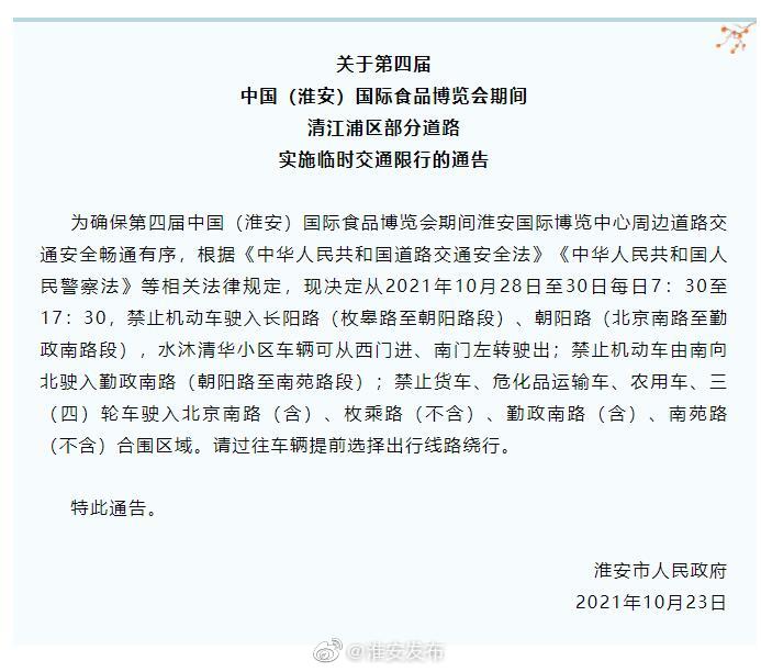 中国(淮安)国际食品博览会交通限行